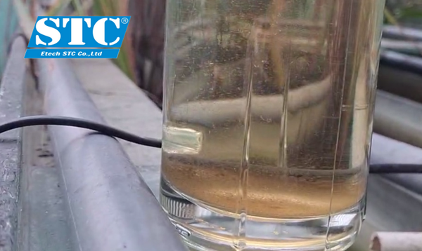 Hình nước đạt trạng thái cân bằng Biofloc sau khi để lắng 2h.