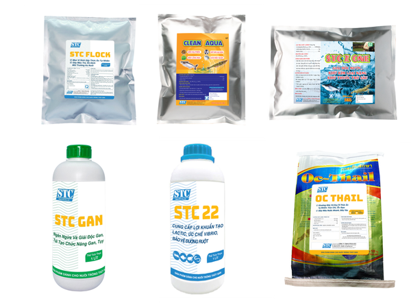 Một số sản phẩm được sử dụng trong quy trình nuôi tôm STC A- phiên bản 1